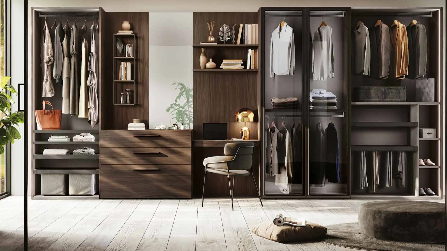 Un dressing bien pensé, c'est la promesse d'un quotidien simplifié. Walk-in closet, armoire intégrée ou pièce dédiée : nous créons des espaces de rangement qui s'adaptent à votre garde-robe et à l'architecture de votre intérieur.