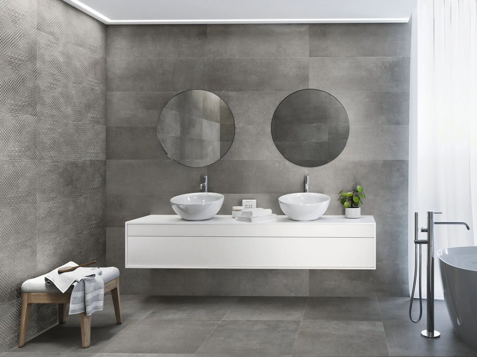 Carrelage effet béton de première qualité, disponible dans différents formats et différentes finitions : semi-poli, Naturel, anti-dérapant.