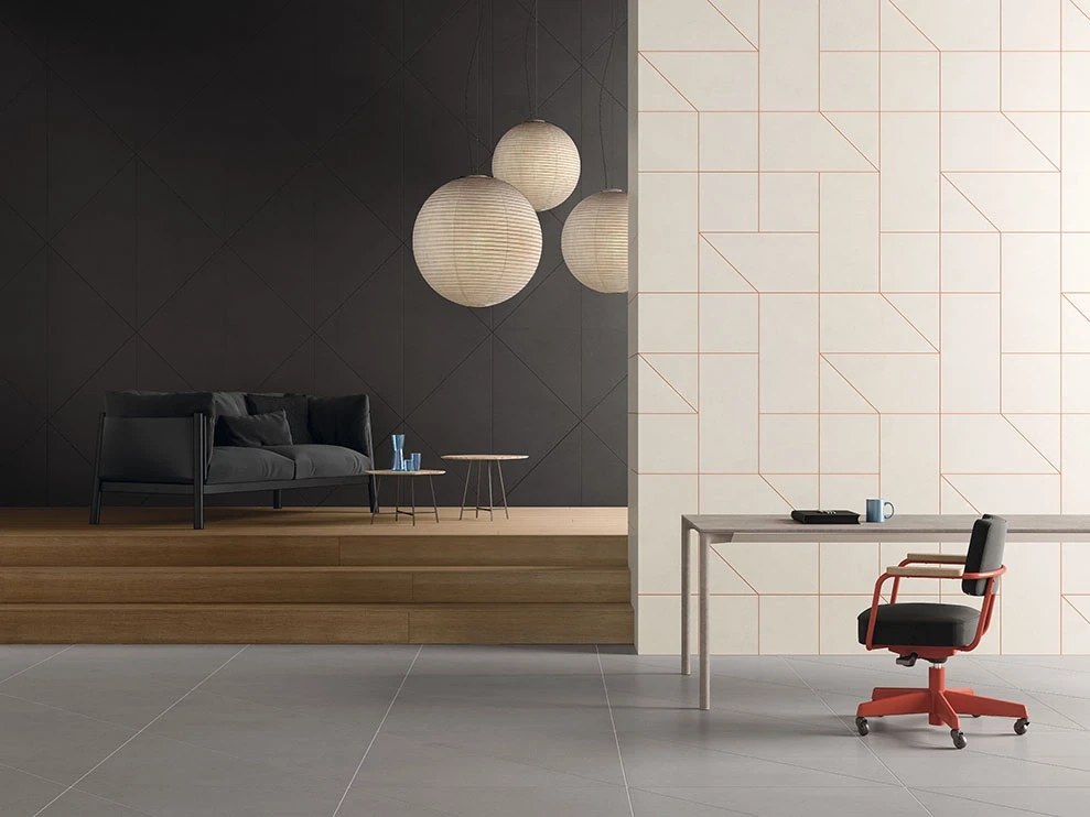 Le projet Cava Mosaico est le prolongement naturel du projet Cava qui, après avoir été enrichi de carreaux de taille standard, est également complété par de petits formats. Il consiste essentiellement en une matrice de composition unique qui utilise une pièce triangulaire; cette pièce peut être complète ou coupée en biais avec la même technologie de jet d’eau, déjà utilisée uparavant. En utilisant ces deux éléments simples dans la même matrice, vous obtenez des modèles très différents les uns des autres. Les espaces vides, une fois remplis du joint, donnent lieu à la véritable décoration de la surface. Encore une fois, comme dans la collection principale, les joints deviennent design, dans un jeu d’investissement positif / négatif. Ce qui a toujours été considéré comme un défaut devient, en fait, le protagoniste des chaussées et des revêtements, laissant au joint la tâche de décorer la surface.”