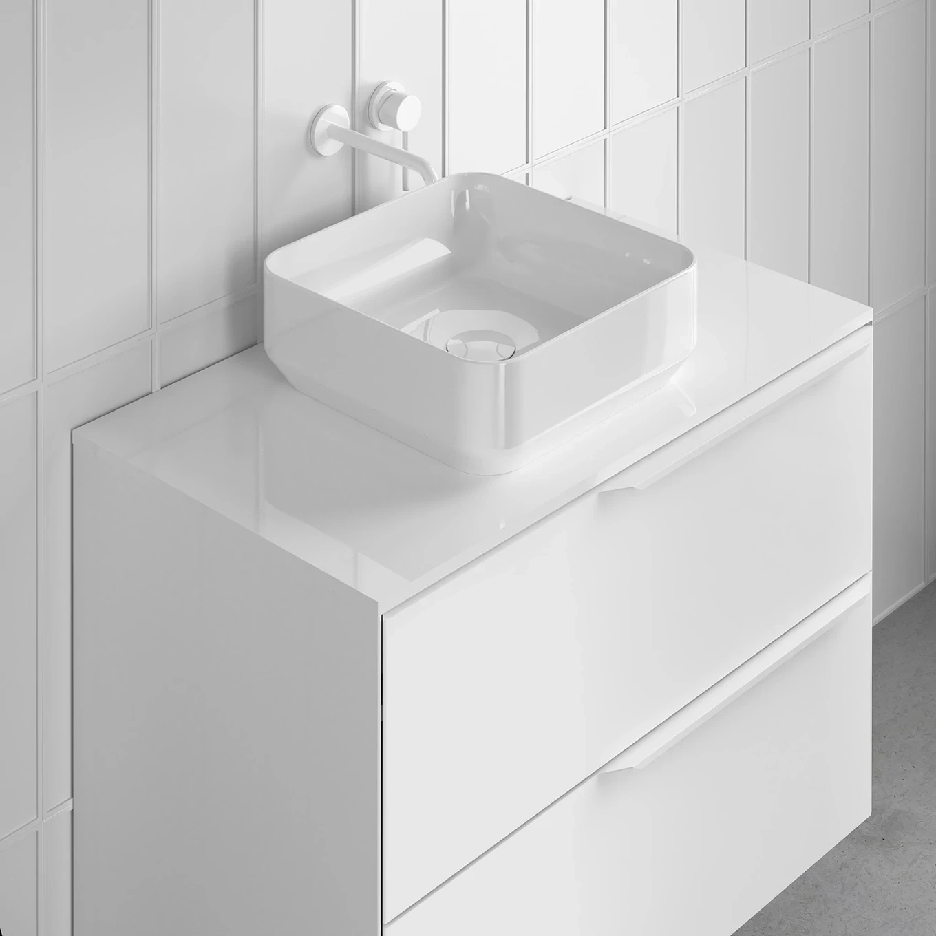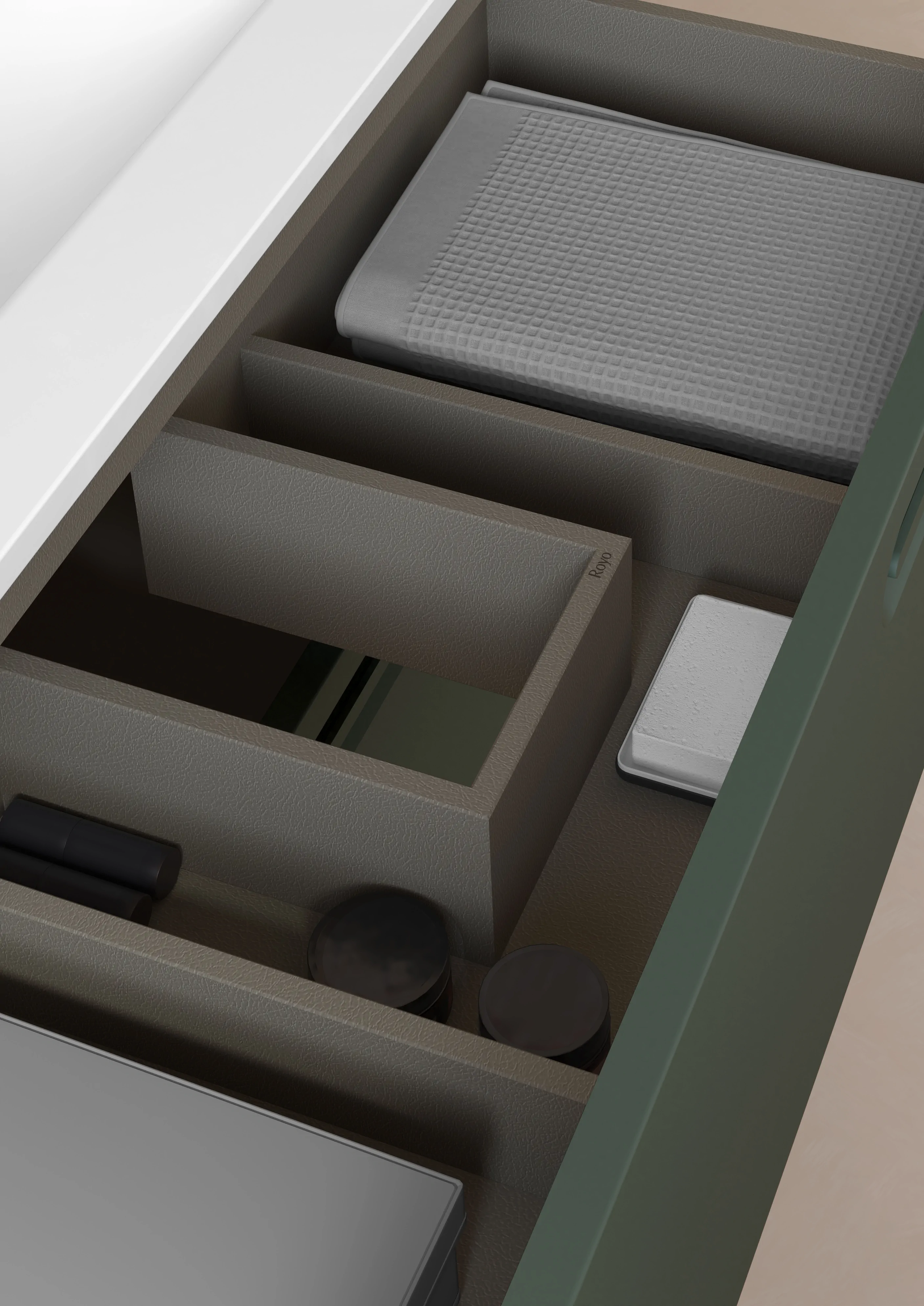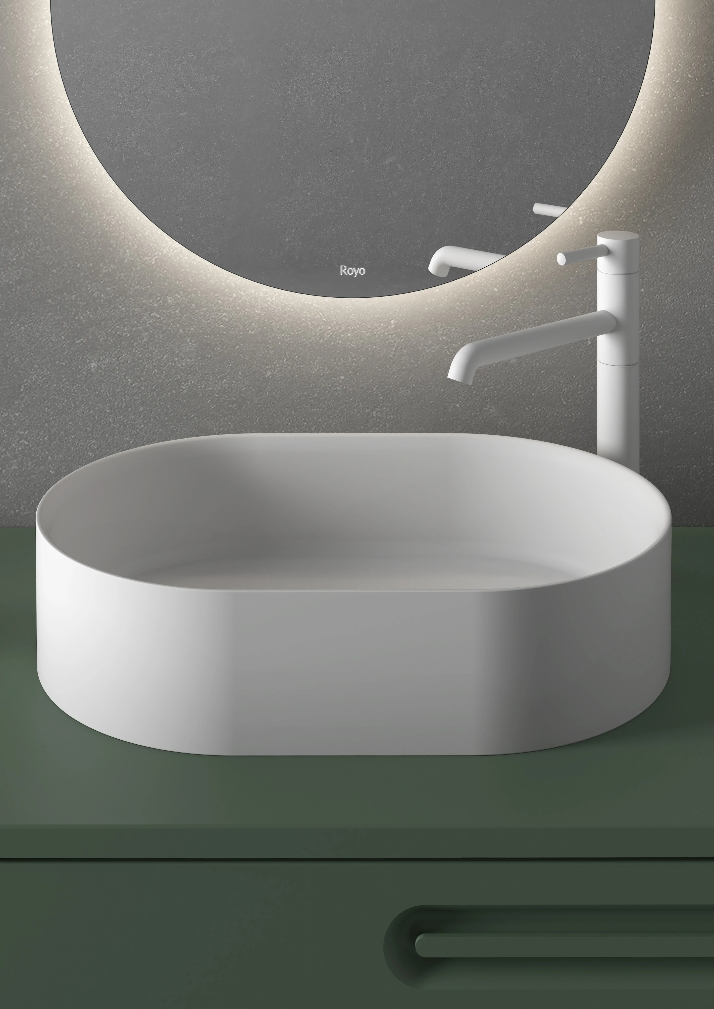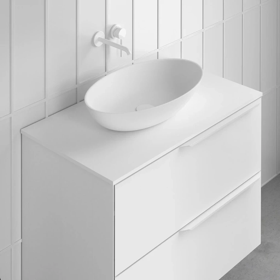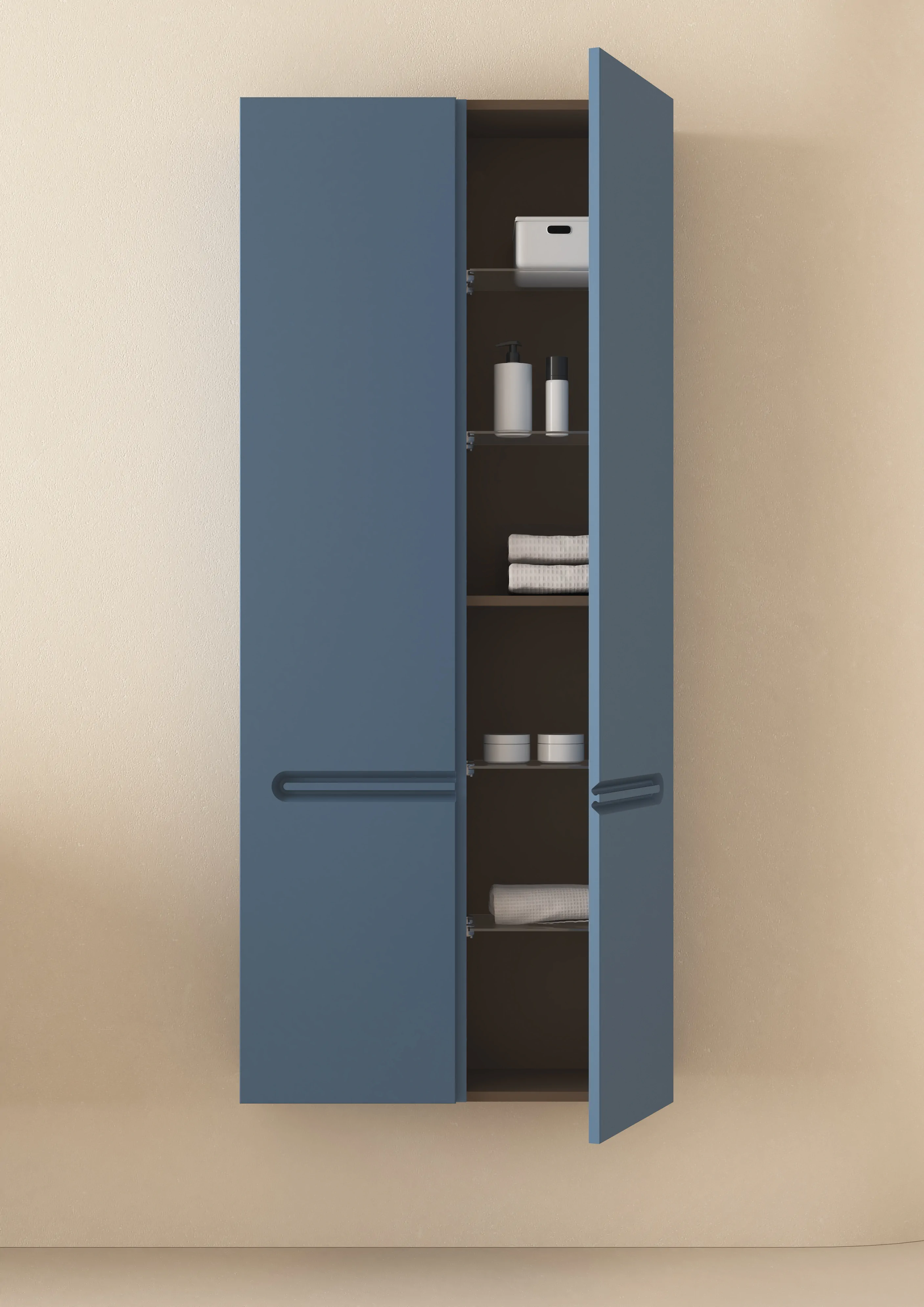 Collection emblématique. C’est un regard sur la nature, présente dans chacune de ses formes arrondies, dans la conception de la poignée, dans les plans vasques et ses miroirs, représentant les courbes des montagnes et le cours des rivières. Intérieur du tiroir en cuir fumé. Finitions laques durables à l’eau. Glissières d’extraction totale Hettich. Option de vasque intégrée ou à poser.