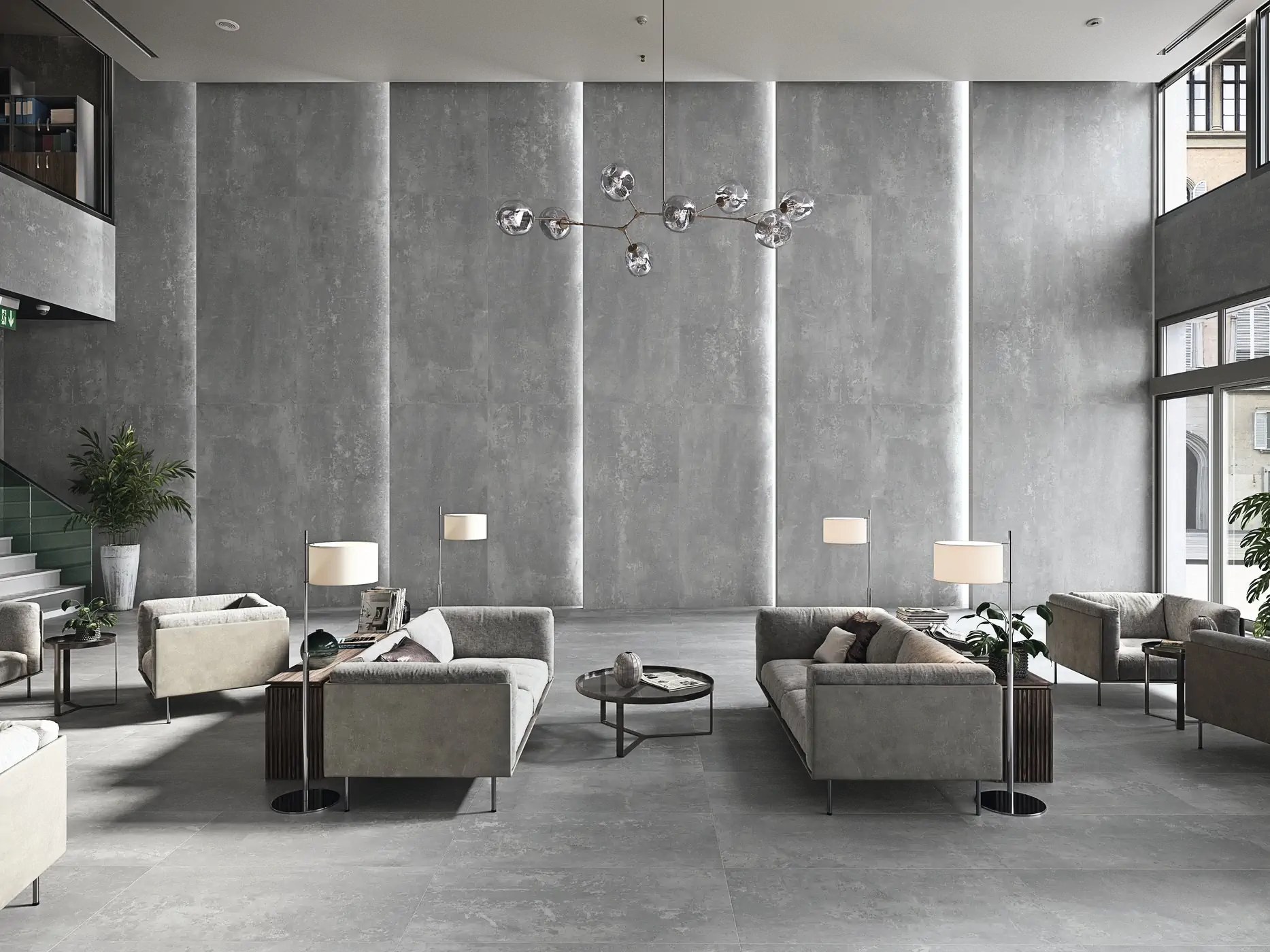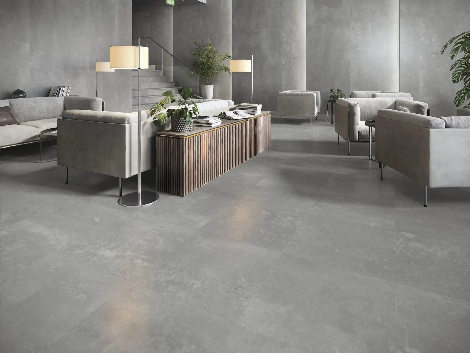 Carrelage effet béton de première qualité, disponible dans différents formats et différentes finitions : semi-poli, Naturel, anti-dérapant.