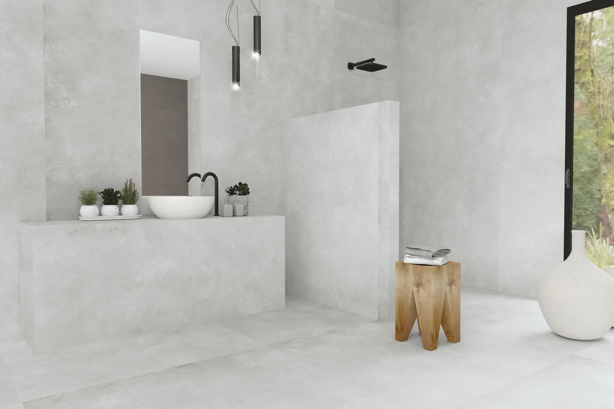 Carrelage effet béton de première qualité, disponible dans de nombreux formats et différentes finitions.