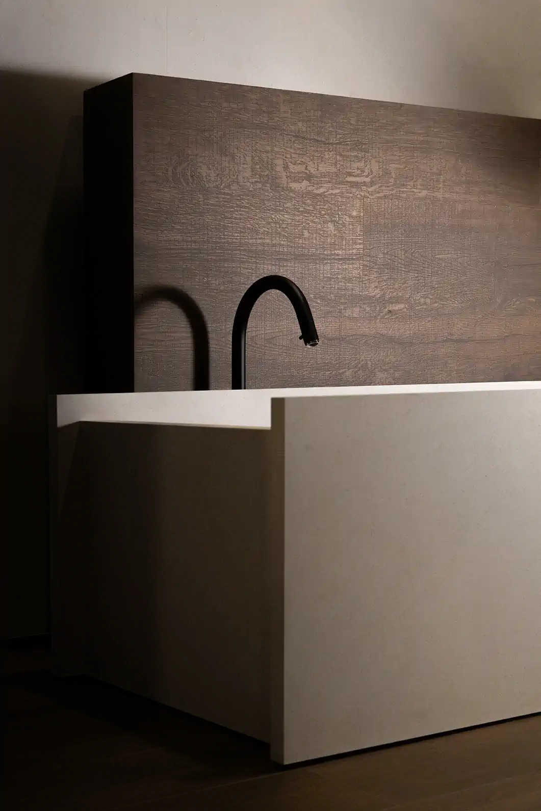 Ombra s’inspire du bois scié et trouve un lien fort avec la nature dans les intensités subtiles du grain et les marques douces uniques qui couvrent le graphique. Un choix contemporain qui trouve son charme dans la différenciation du bois marqué par le passage du temps. Ombra est disponible en quatre teintes conçues pour répondre à des besoins esthétiques différents